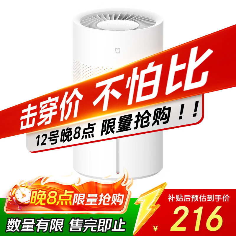 百亿补贴小米官旗米家空气净化器5S除甲醛菌数显吸烟宠物家用医护级净化机
