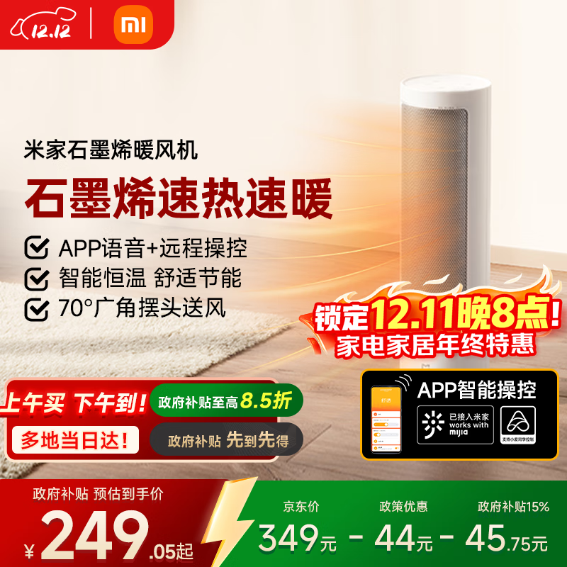自营米家小米智能石墨烯取暖器暖风机小太阳电暖气7档调温智能恒温电暖器LSNFJ04ZM