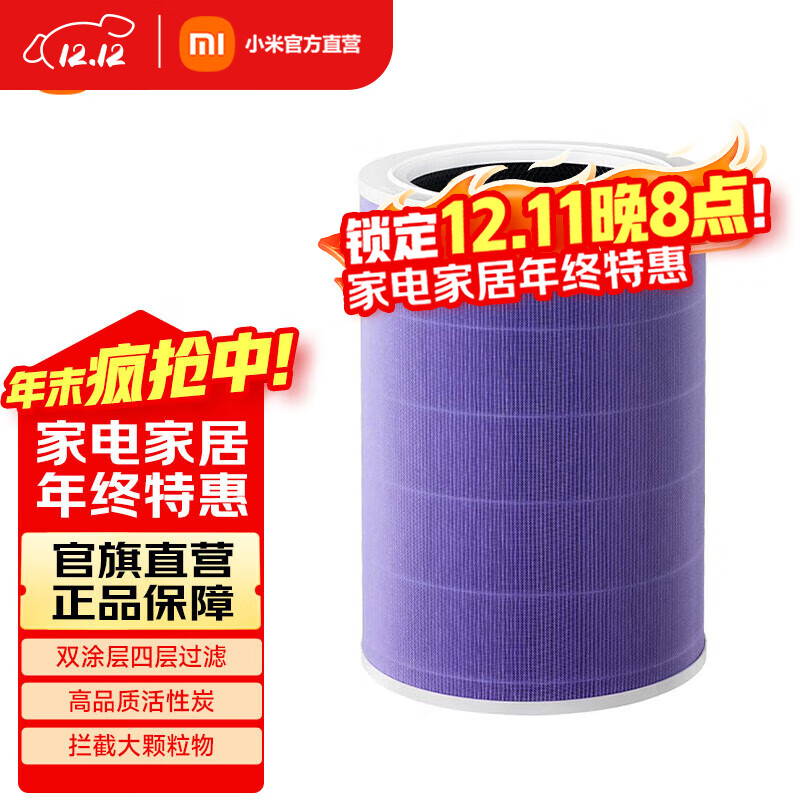 旗舰店米家 小米空气净化器滤芯滤网 升级款 除甲醛菌除烟味 适用于1代/2/2S/3/pro 米家空气净化器滤芯