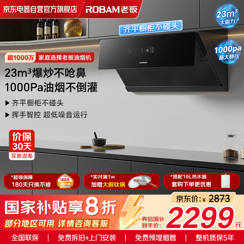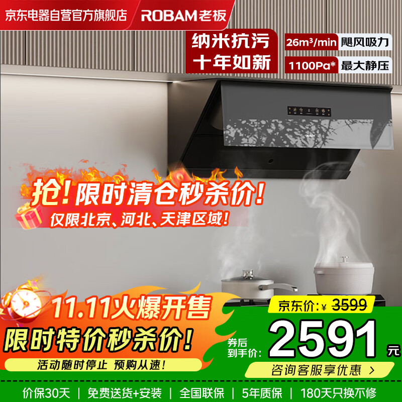 自营老板(Robam)抽油烟机家用大吸力 真平嵌侧吸式 26立方大风量26X1-G1吸油烟机 纳米抗污易清洁【火山岩黑】
