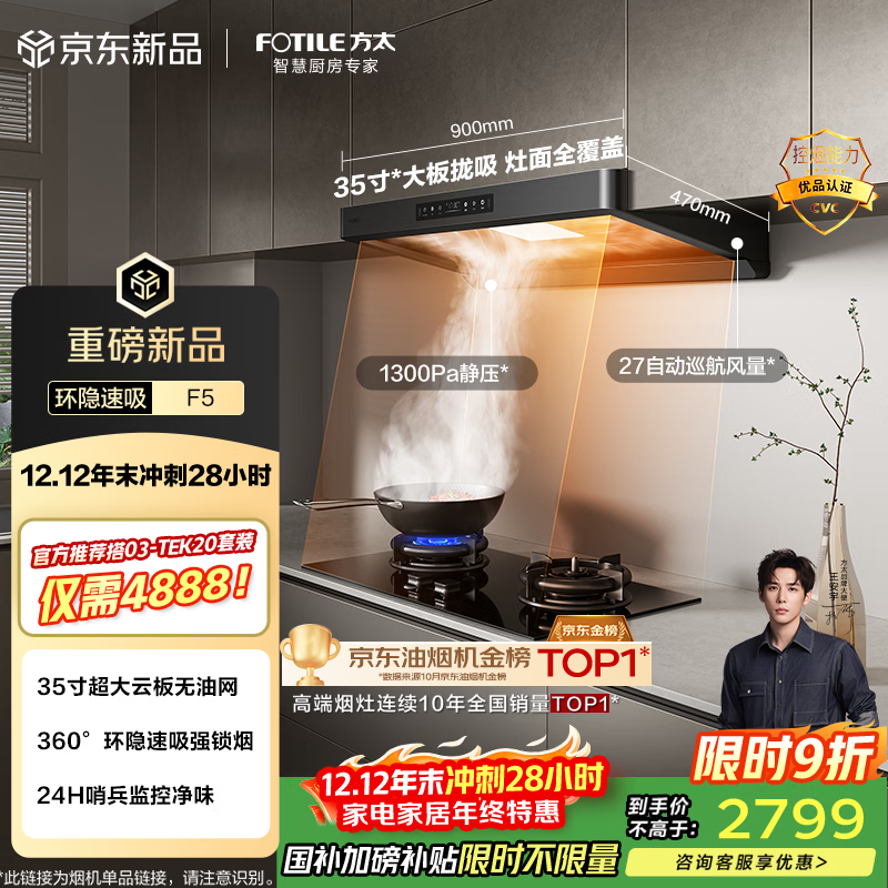 自营方太F5纤薄欧式顶吸27风量 智感净味【推荐灶03-TEK20】抽吸油烟机家用厨房 以旧换新国家补贴20%