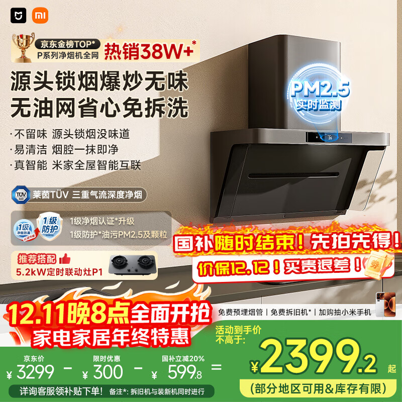 自营米家小米抽吸油烟机净烟机P1国家补贴以旧换新家用侧吸大吸力一级能效上门安装免拆洗可配燃气灶MJ04CY