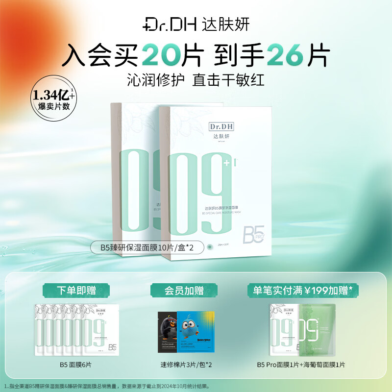 自营达肤妍b5保湿面膜补水修护褪红温和舒缓护肤男女适用新年礼遇季送礼26片