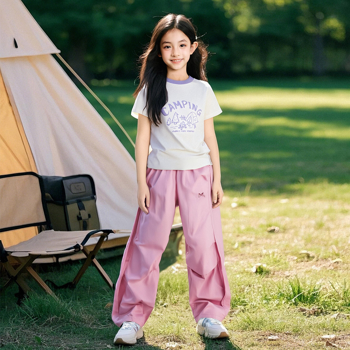 【宽松褶皱设计感工装裤】女童25春秋中大童儿童休闲裤长裤