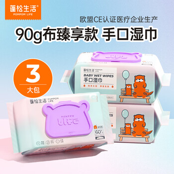 旗舰店蓬松生活婴幼儿手口湿巾 大包清洁珍珠纹 宝宝护臀婴儿湿巾纸 【臻享款】 60抽 3包