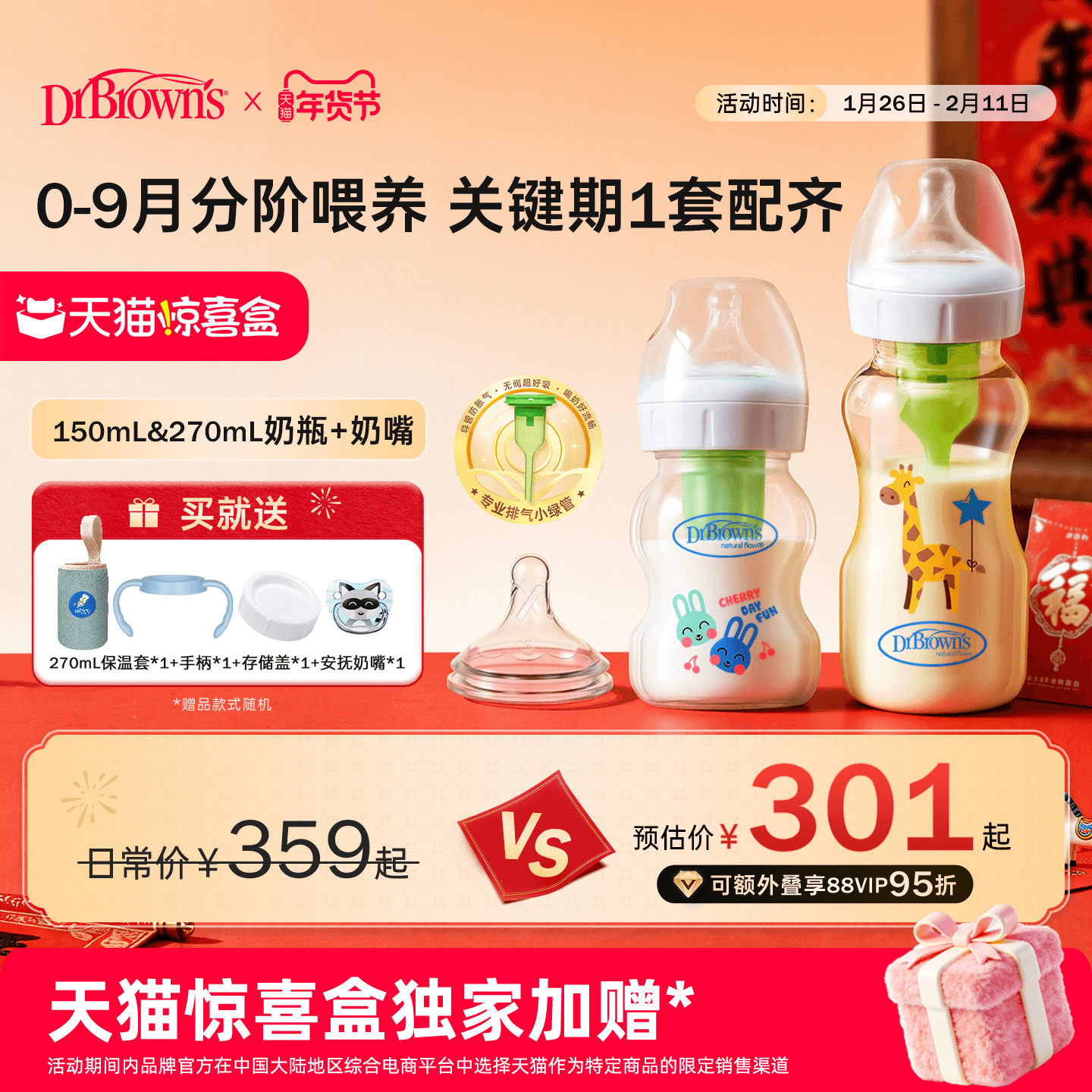旗舰店【独家惊喜盒】布朗博士奶瓶婴儿新生0-9个月宝宝防胀气玻璃PPSU