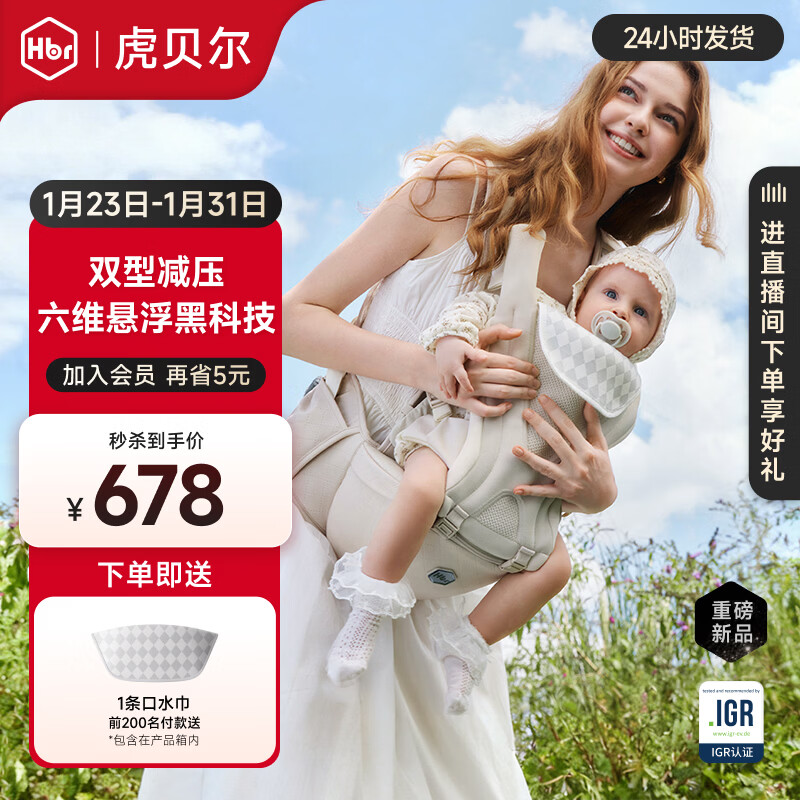 旗舰店虎贝尔(HBR)Air Fit双型悬浮减压腰凳婴儿背带宝宝四季轻便抱娃 Air Fit双型悬浮腰凳-沙雾棕