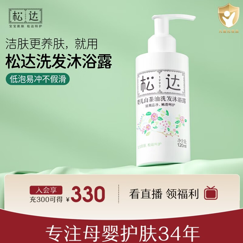 旗舰店松达婴儿洗发沐浴露二合一0-3-6岁宝宝洗发水易冲洗天然无香无硅油 洗发沐浴露120ml瓶装