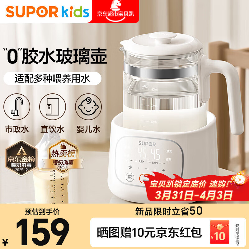 自营苏泊尔(SUPOR)恒温水壶 婴儿调奶器 泡奶粉机 玻璃热烧水壶家用养生壶1.2L BW22