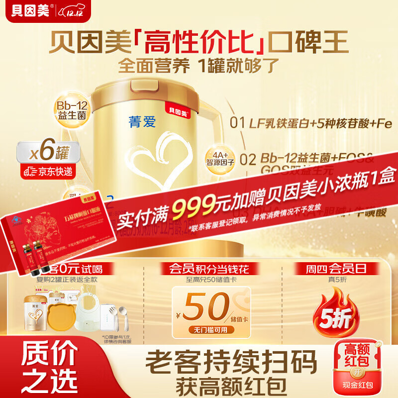 自营贝因美(Beingmate)爱加6-12月幼儿奶粉2段800g*6多罐免疫成长奶粉含乳铁蛋白