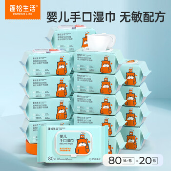 旗舰店蓬松生活宝宝湿巾婴儿手口屁专用加厚加大湿纸巾婴幼儿家庭装EDI纯水湿巾 【经典款】80抽*5包