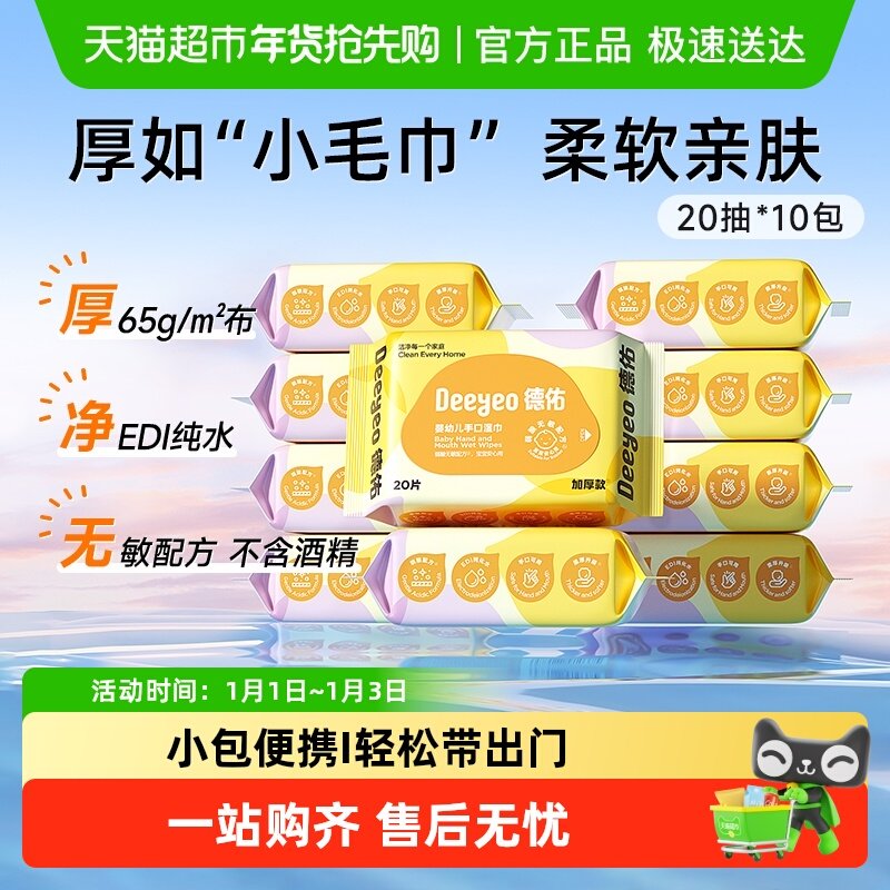 旗舰店德佑婴儿手口专用湿巾新生儿湿纸巾学生儿童大包家庭实惠80抽批发