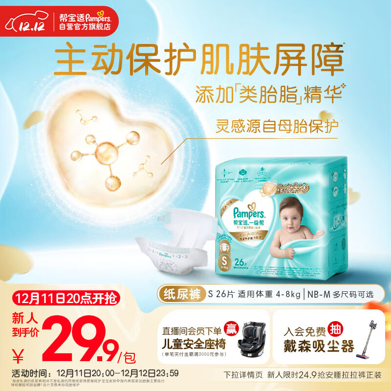 自营帮宝适护臀级一级帮新生儿婴儿纸尿裤尿不湿添加类胎脂mini试用 S26