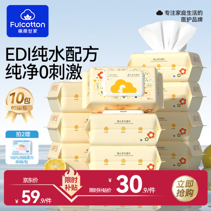 【详情优惠】德佑婴儿湿巾纸宝宝手口专用纯水湿纸巾加厚家用大包