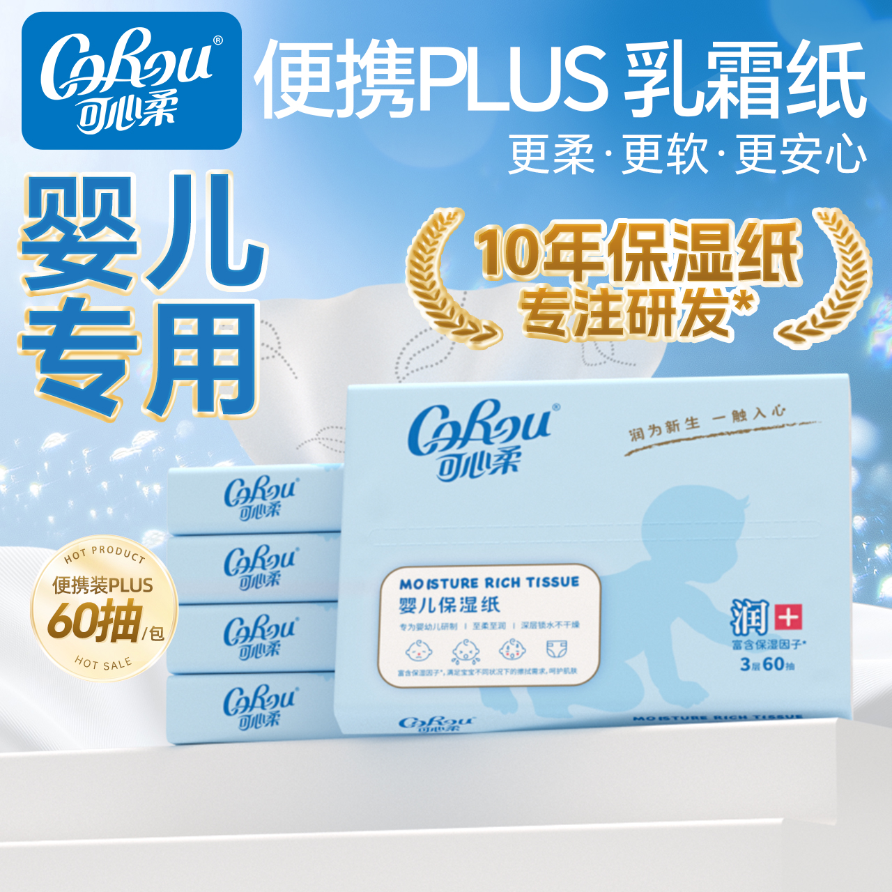 旗舰店可心柔V9婴儿柔纸巾宝宝专用保湿乳霜纸母婴云柔巾60抽5包便携装