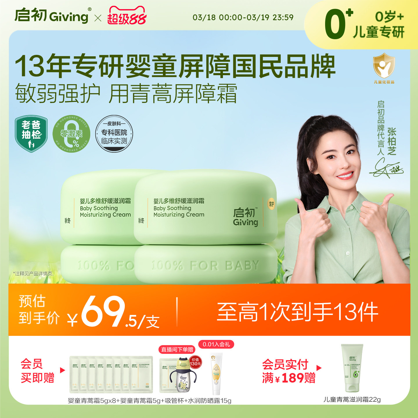 旗舰店【老爸评测】启初儿童面霜青蒿屏障霜婴儿0+宝宝无激素舒缓滋润