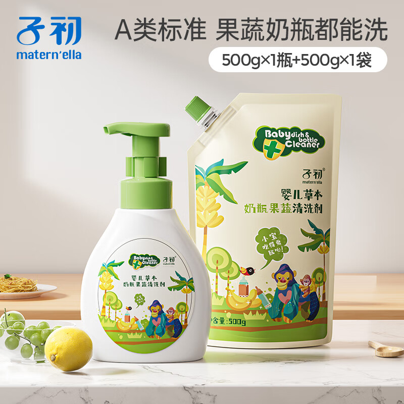 旗舰店子初 婴儿多效奶瓶果蔬清洗剂奶瓶果蔬清洁泡沫型婴儿奶瓶清洗液 果蔬清洗剂500g+补充装500g1袋