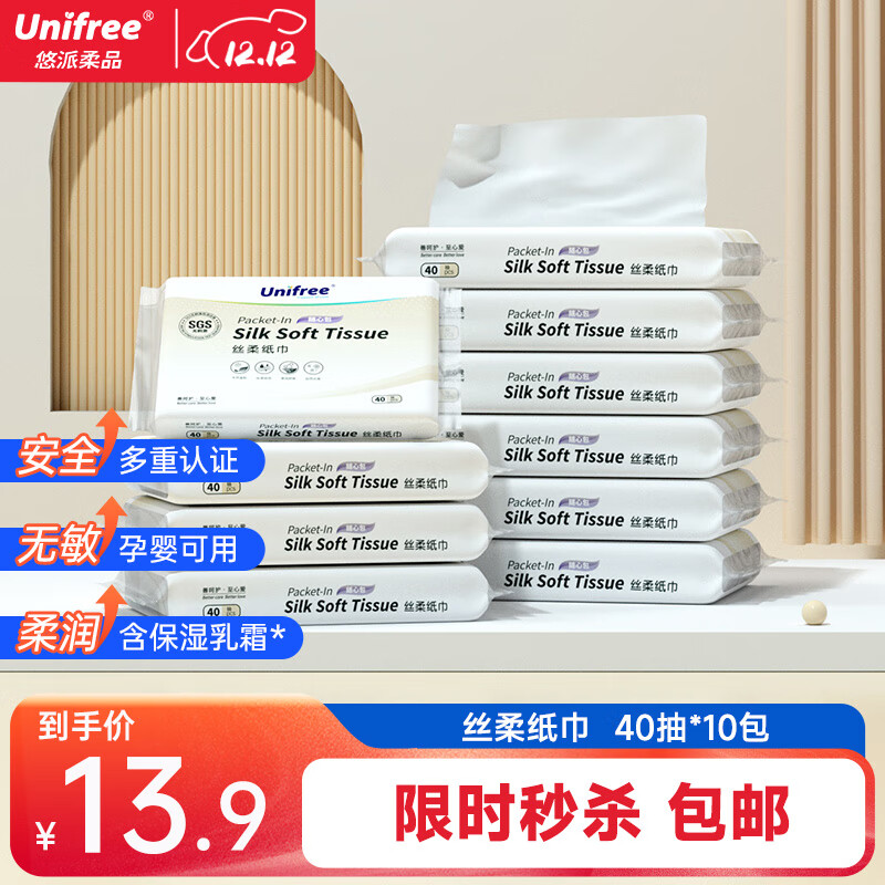 COROU/可心柔宝宝抽纸婴儿柔纸巾新生儿纸巾40抽10包便携装柔纸巾