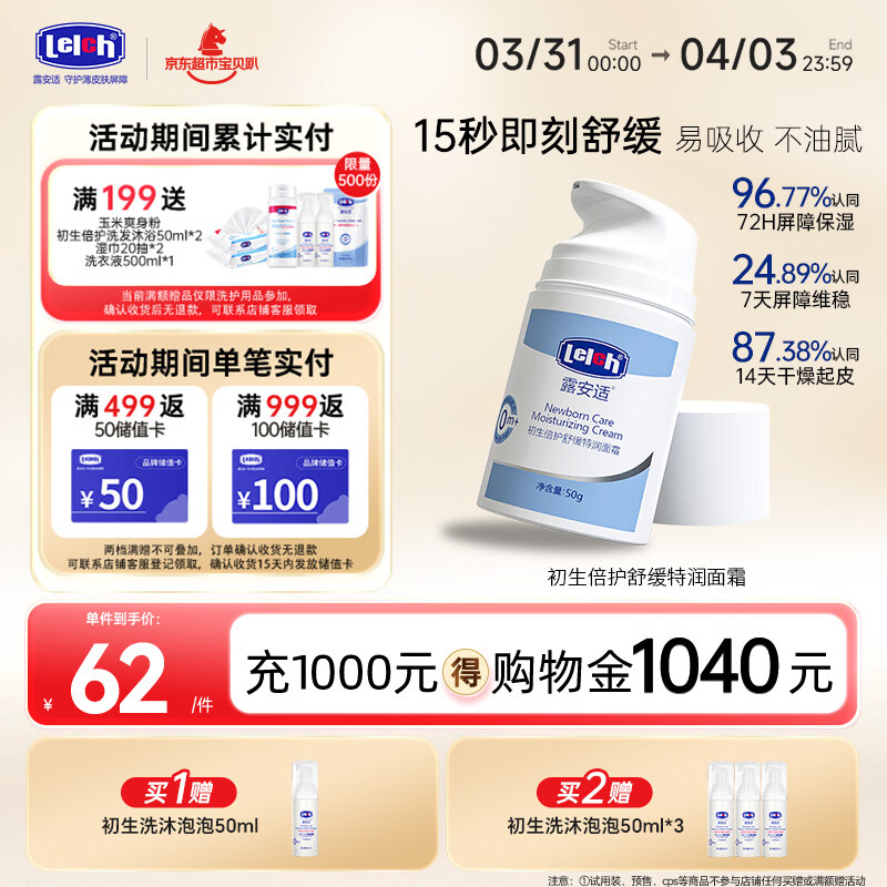 自营露安适(Lelch)初生倍护舒缓特润儿童面霜 宝宝润肤乳 护手霜 保湿0岁以上 50g