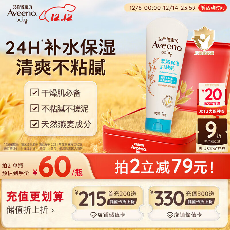 自营艾惟诺(Aveeno)艾维诺婴儿润肤乳露儿童宝宝面霜滋润保湿防干痒身体乳护手霜227g