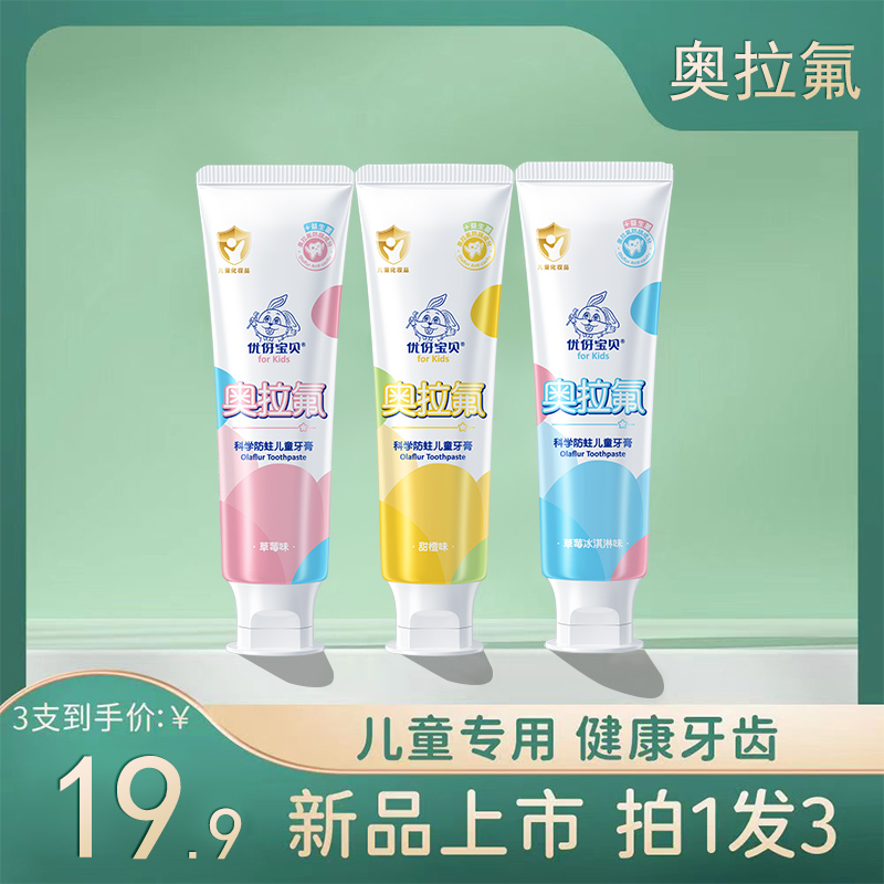 旗舰店优伢宝贝奥拉氟儿童牙膏2-3-6-12岁宝宝含氟防蛀牙膏水果味不辣嘴