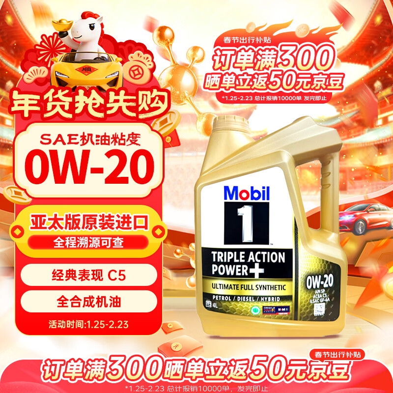 自营美孚1号 全合成机油 经典表现 0W-20 C5级 4L 新加坡原装