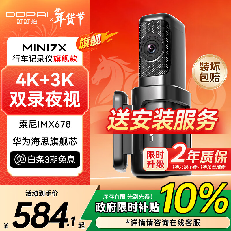 自营盯盯拍行车记录仪MINI7X 4K黑光夜视 128G内置存储 4G远程互联