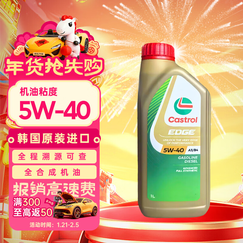 自营嘉实多(Castrol)极护 钛流体全合成机油 5W-40 SQ 1L/桶 韩国进口
