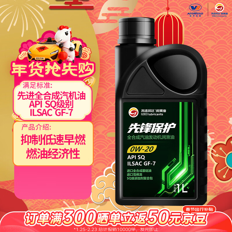 自营高德润达先锋保护系列SQ级 GF-7 0W-20全合成汽机油 1L装 保养京东养车
