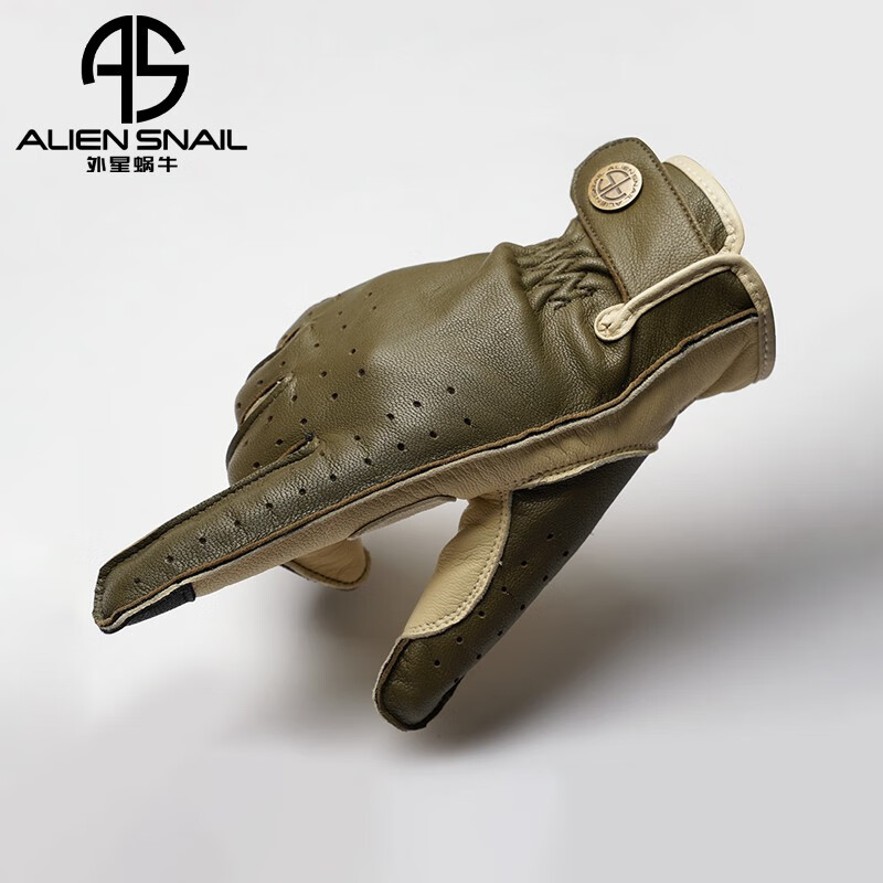 外星蜗牛V5摩托车手套羊皮复古机车触屏防滑耐磨骑行男女手套春秋款 绿色 M