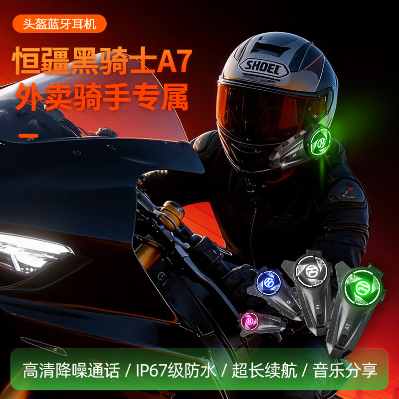 恒疆黑骑士A7外卖骑手专属头盔蓝牙耳机防水降噪超长续航氛围灯随心变
