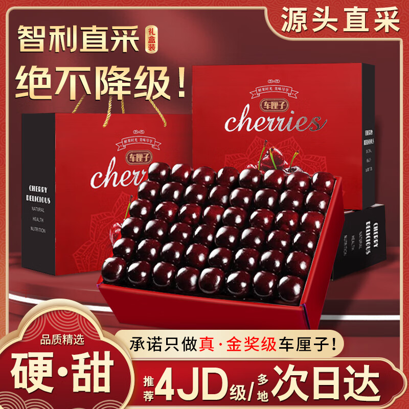 旗舰店梓颐智利车厘子【JD-多地次日达】大樱桃进口年货节水果礼盒 4斤(净重) 4J级 单果32-34mm礼盒