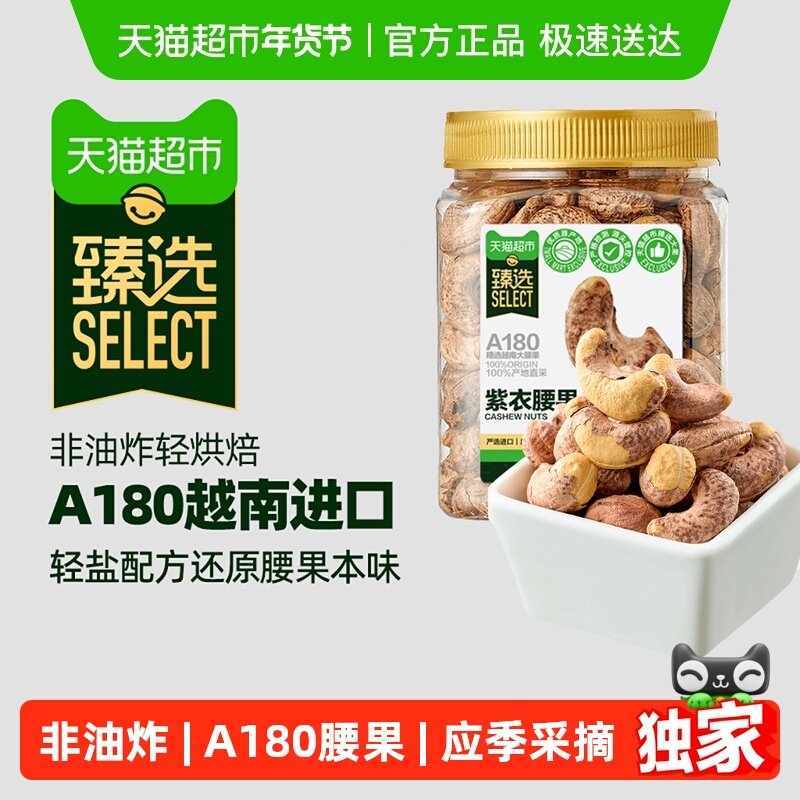 【臻选】越南A180紫皮腰果罐装轻盐大颗粒每日坚果零食