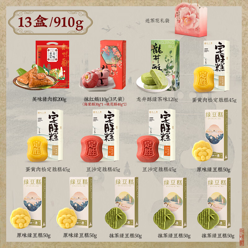 旗舰店知味观粽子礼盒蛋黄肉粽豆沙粽蜜枣粽早餐咸鸭蛋杭州特产团购端午送礼物 【赠礼袋-糕点粽子多口味组合】