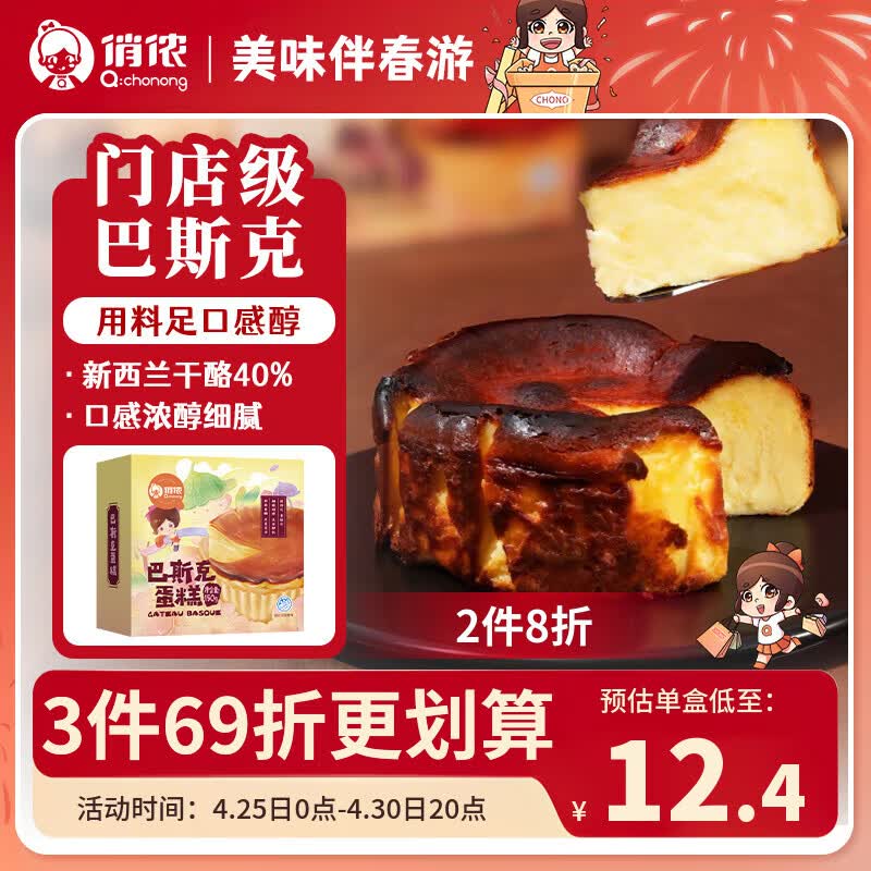 自营俏侬 巴斯克芝士蛋糕300g(2盒)烘焙糕点西式甜点下午茶