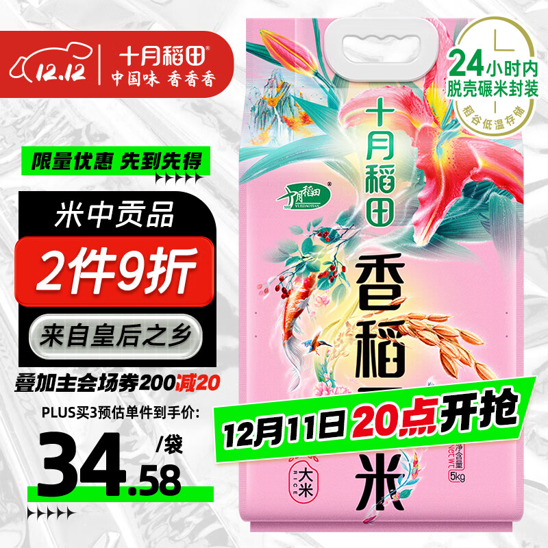 自营十月稻田 2025年新米 长粒香大米 20斤(东北大米 香米 10公斤)