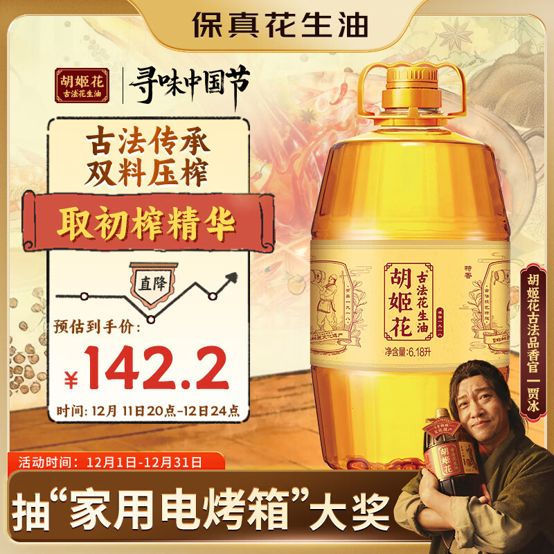 自营胡姬花 食用油【保真花生油】压榨 古法花生油6.18L