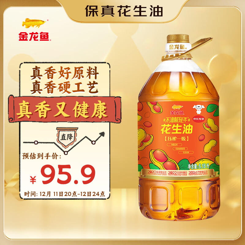 自营金龙鱼 食用油【保真花生油】物理压榨 压榨一级花生油6.18L
