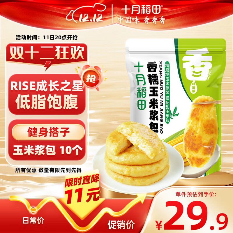 自营十月稻田 香糯玉米浆包 10个 2斤 玉米粑粑 东北原味 低脂粗粮 早餐代餐