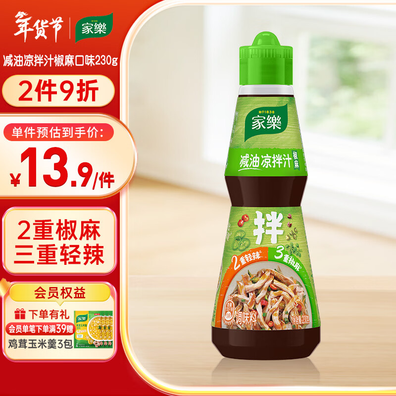自营家乐凉拌汁系列 减油凉拌汁椒麻口味230g 蘸料拌面海鲜捞汁沙拉油醋汁