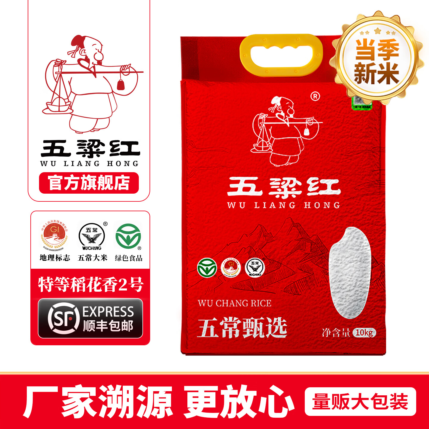 旗舰店五粱红当季新米【特等五常大米20斤】稻花香2号gbt19266真空家庭装 五梁红五常甄选 10kg*1袋