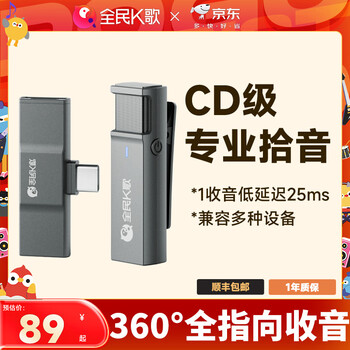 旗舰店全民K歌无线麦克风 一拖一无线领夹麦克风 手机相机采访vlog户外直播录音收音麦MC13Lightning口-黑色 TYPE-C口-黑色