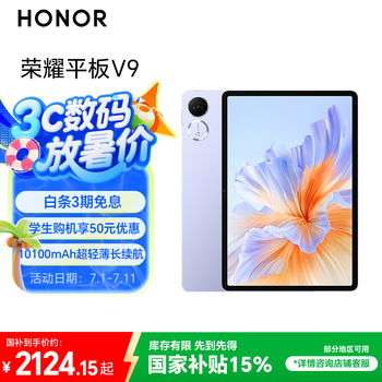 自营荣耀平板V9【国家补贴】11.5英寸平板电脑 144Hz绿洲护眼屏 超轻薄长续航 12GB+256GB 庐烟紫