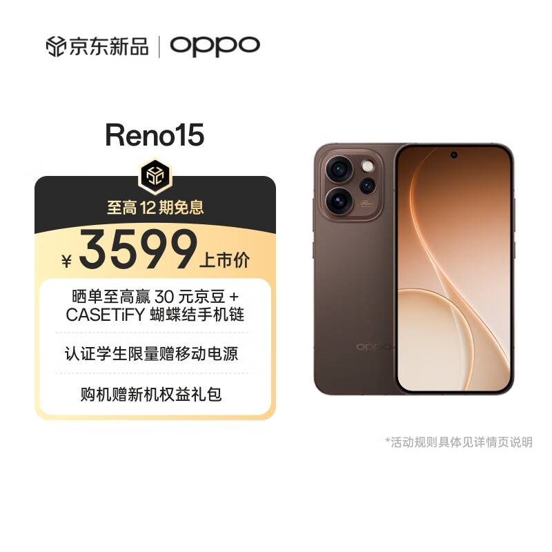 自营OPPO Reno15 16GB+512GB 可露丽棕 2亿像素 出圈实况拼图 小直屏 5G智能 学生游戏 AI拍照手机 新品