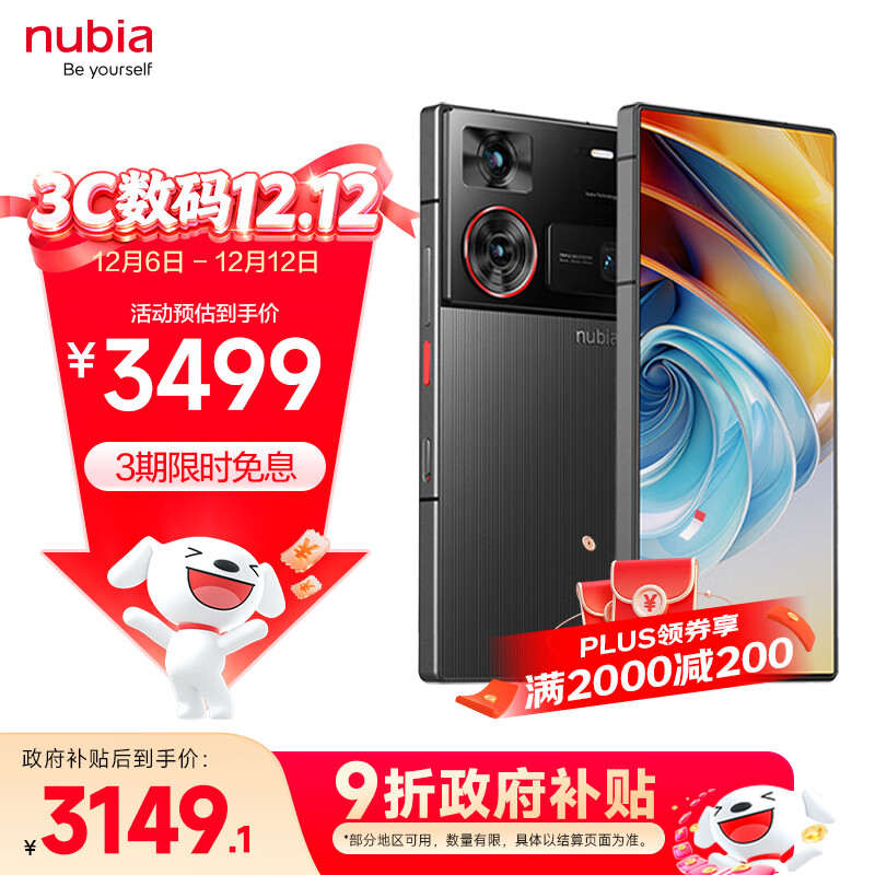 自营努比亚(nubia)Z60 Ultra领先版 真全面屏16GB+512GB竞速黑 第三代骁龙8领先版 三主摄 5G手机 国家补贴