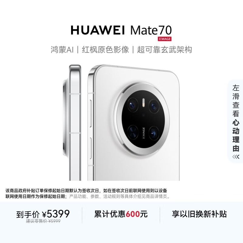 自营HUAWEI Mate 70 12GB+512GB鸿蒙NEXT先锋版 雪域白鸿蒙AI 红枫原色影像 华为鸿蒙智能手机