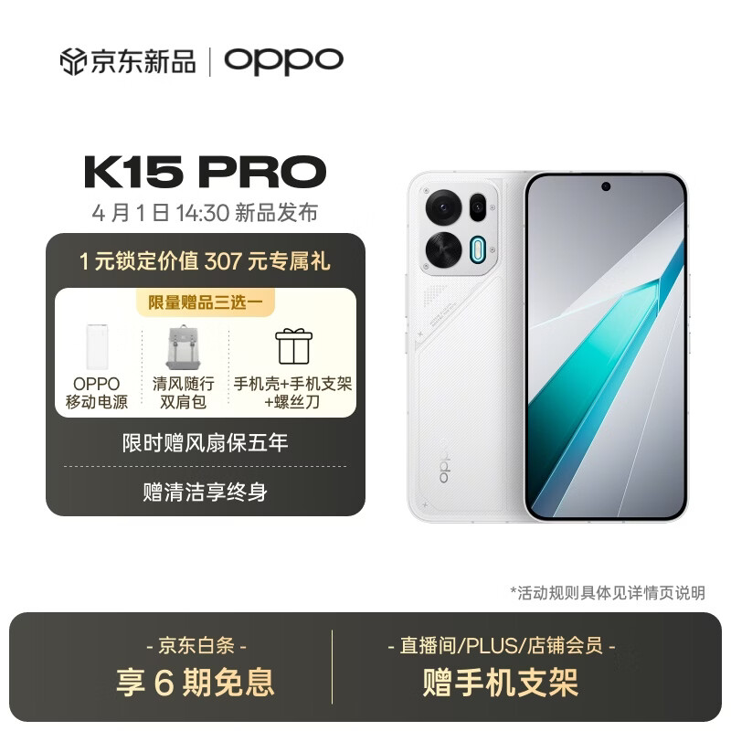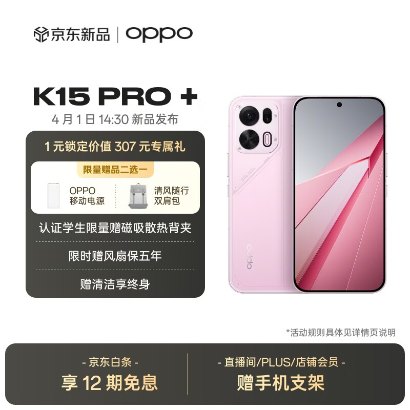 自营OPPO K15 Pro+ 12GB+256GB 光尘粉 超感玩家 驭风登场 新品5G手机 4月1日14:30 发布 敬请期待