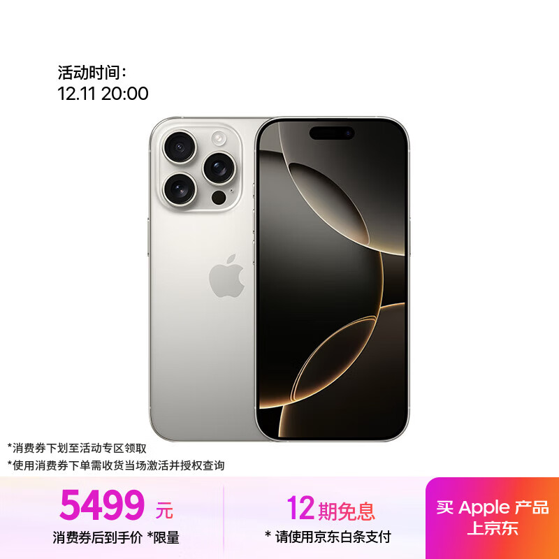 自营Apple/苹果【政府补贴需激活】iPhone 16 Pro(A3294)128GB 原色钛金属 支持移动联通电信5G 双卡双待