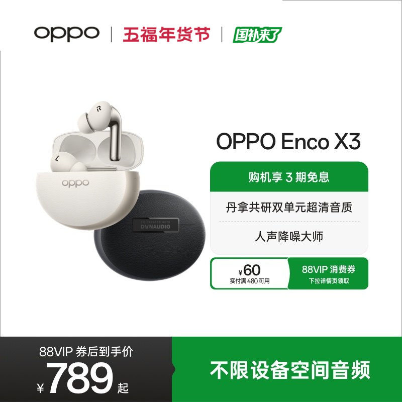 百亿补贴OPPOEncoX3蓝牙耳机官方正品旗舰音质智能降噪入耳式长续航无线