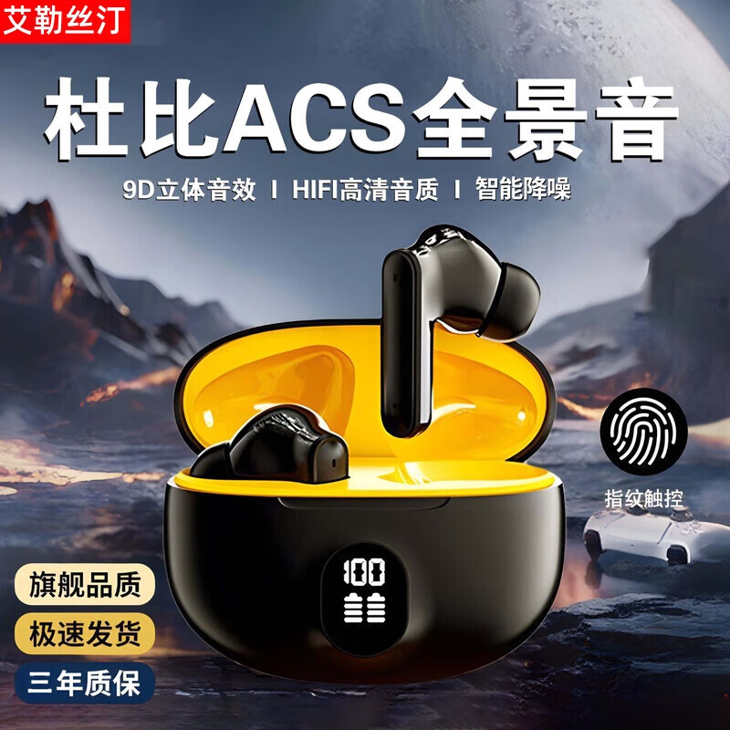 旗舰店艾勒丝汀【空间音效丨智能数显】蓝牙耳机真无线超长续航ENC通话降噪入耳式运动跑步游戏适用苹果安卓机 骑士黑【CD级无损原声】 超长续航丨定向传音丨AI通话降噪